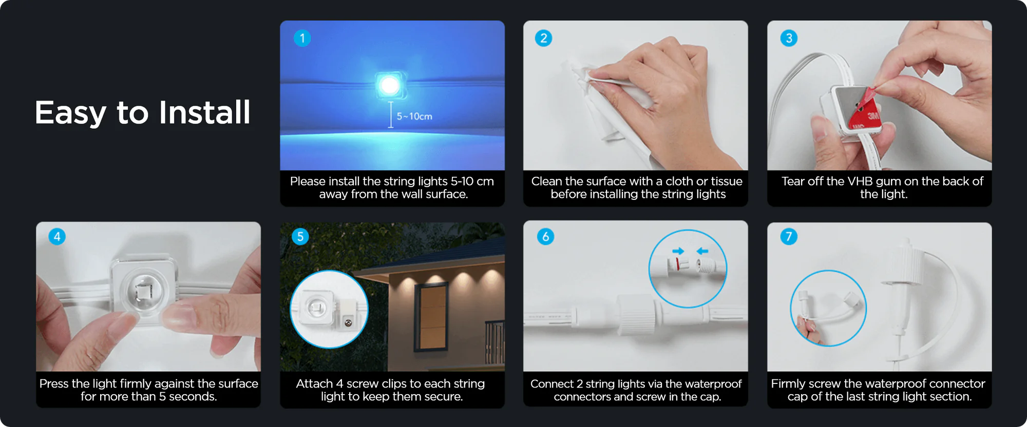 Easily customize colors and brightness to match your mood, holiday, or special occasion through the mobile app. Built to withstand harsh weather conditions, these lights are water-resistant and durable for long-term, safe outdoor use. Perfect for gardens, balconies, or patios, they create the ultimate outdoor ambiance and comfort.